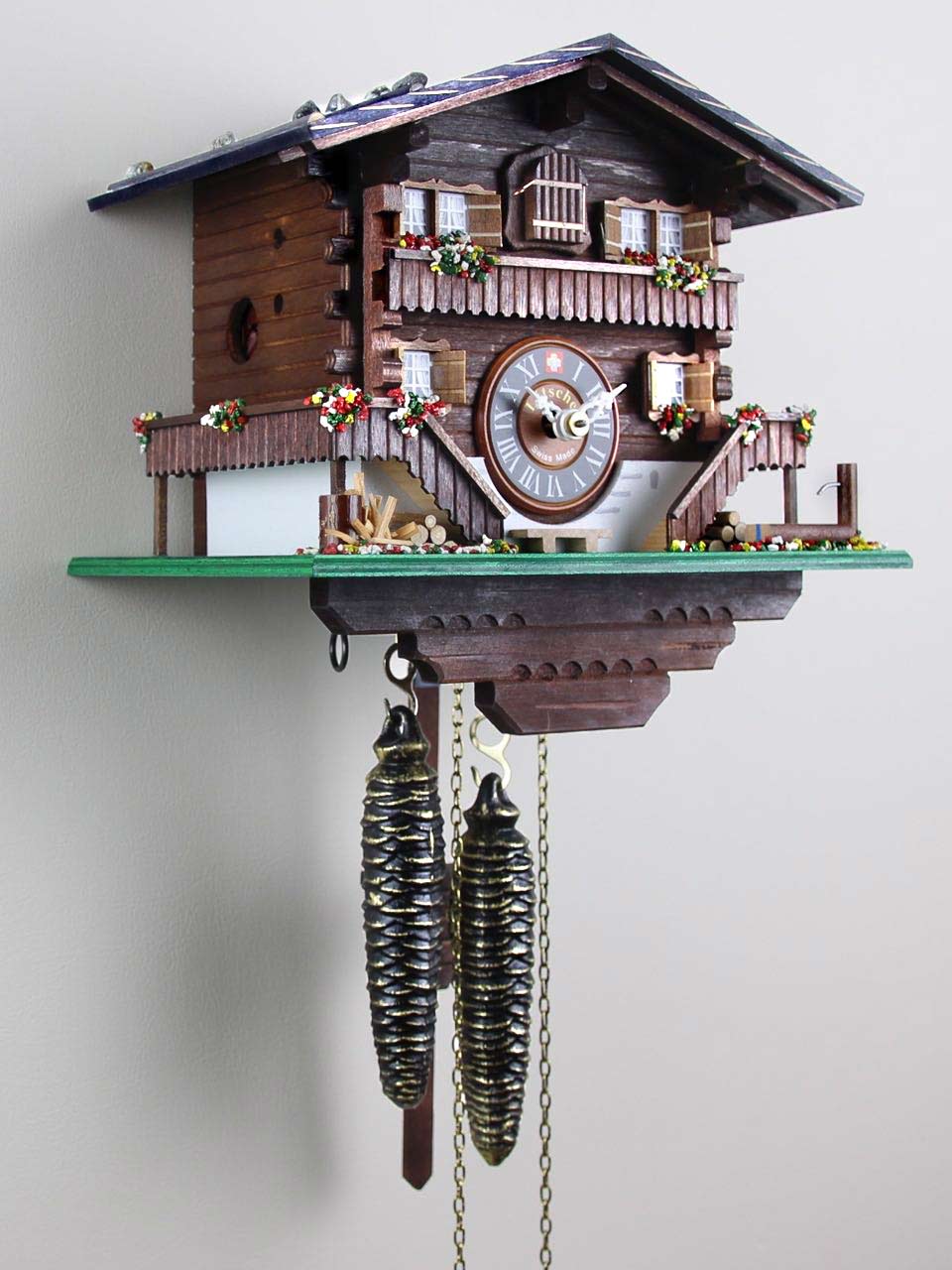 Loetscher는 1920년에 최초의 뻐꾸기시계를 출시했으며 그 디자인에 대한 영감은 우리의 작업장이 들어서 있는 샬레로부터 받았었습니다. 바로 그 살레가 또한 이 모델의 외형과 느낌에 영감을 주었기 때문에 이 모델리야말로 여기 Loetscher에서 우리의 가슴 속에 소중한 장소로 남아 있습니다. 거의 100년에 걸쳐 차츰 넓어진 우리의 작업실만큼이나 많은 변화가 있었고 여러 장식이 더해졌습니다. 하지만 변하지 않은 것들도 있습니다. 정교함에 대한 우리의 고집 그리고 뻐꾸기시계 산업에 혁신을 가져왔던 기본적인 샬레의 디자인은 100년 전과 마찬가지로 그대로 이어져 오고 있습니다. 우리의 ‘브리엔즈 샬레’는 양 쪽에 위치한 두 개의 발코니와 계단으로 구성됩니다. 왼쪽 계단 아래에는 방금 만들어져서 나이테가 선명하게 남아 있는 장작 더미가 쌓여 있고 오른쪽에는 우물이 있습니다. 전체적인 광경은 형형색색의 알프스 야생화들로 장식됩니다. 이 샬레는 또한 알프스 디자인의 또 다른 특징인 지붕 위에 쌓인 많은 눈이 한꺼번에 미끄러져 내려와 피해를 주는 것을 막기 위해 지붕 곳곳에 전략적으로 놓여진 커다란 돌들의 재현에도 공을 들였습니다.