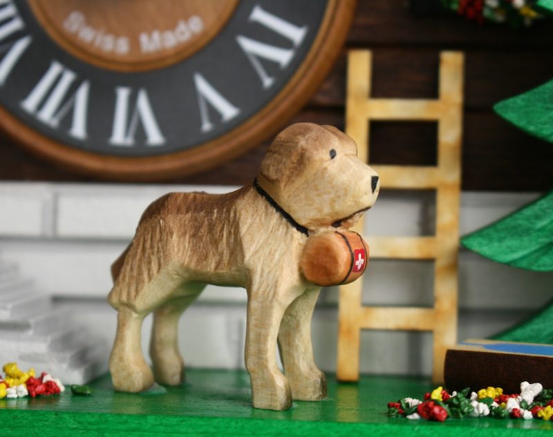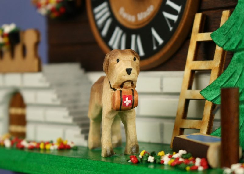 브리엔즈 호수 주변의 산에 살고 있는 스위스 양봉업자들은 초여름이 되면 그 동안 꿀벌들이 알프스 야생화를 이용해 만든 꿀들을 수확합니다. 양봉업은 아주 오래 전부터 알프스에서 행해 오던 중요한 전통산업입니다. 이 생기 넘치는 시계는 성 버나드 품종인 배리가 전형적인 브리엔즈 샬레 앞에 서 있는 장면을 묘사합니다. 이 지역의 양봉업자들이 이용하는 벌꿀통의 디자인을 모방해 손으로 깎아 만든 벌꿀통 두 개와 샬레 곳곳에서 화려한 색을 뽐내는 알프스 야생화가 샬레의 겉면을 장식하고 있습니다.