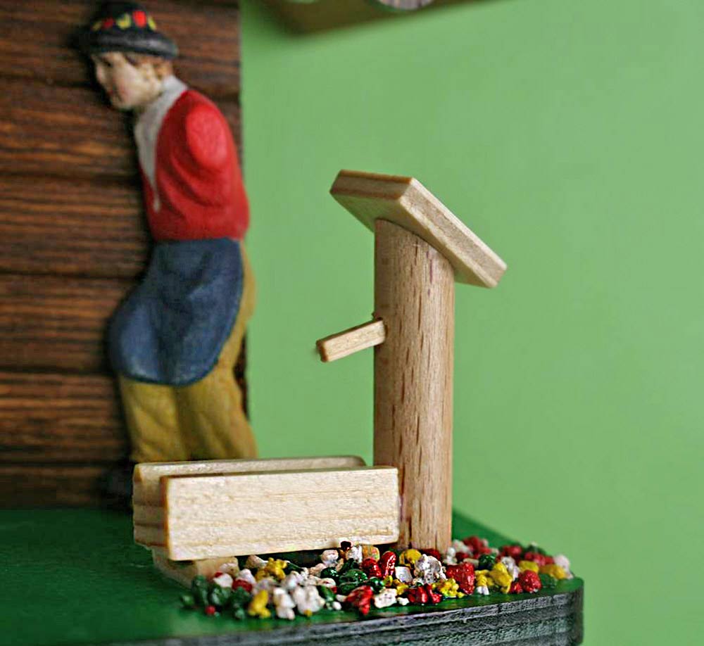 스위스 서부의 중앙에 위치한 베른주에 있는 에멘탈 계곡은 나무 다리, 치즈 농장, 중세시대의 성, 목가적 농장이 점점이 펼쳐 있는 마치 꿈에서나 볼듯한 풍경으로 유명합니다. Loetscher의 에멘탈 샬레 시계는 전형적인 에멘탈 스타일의 샬레를 디테일하게 재현하였으며 영감을 얻게 해준 이 아름다운 장소에 감사의 인사를 전합니다. 이 지역은 또한 목재 가공 장인들로 유명하며 그 중 두 명을 이 샬레의 양쪽에서 볼 수 있습니다. 왼쪽에는 뒤로 휘어진 웅장한 뿔이 달린 야생 염소가 당당하게 서 있고 오른쪽에는 에멘탈의 전통적 우물이 매끈하게 조각되어 있습니다. 전 세계로부터 사랑을 받고있는 에델바이스 꽃은 시계 아래 부분을 장식하고 있으며 린덴 목재를 깎아 재현하였습니다.