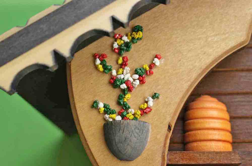 호기심 많고 생기 넘치는 동물인 염소가 가장 맛있는 꽃 또는 나무의 잔가지를 찾는 모습은 스위스 산악지대 주변에서 많은 사랑을 받고 있는 광경입니다. 이 귀엽고 작은 염소는 목에 종을 단 채 브리엔즈 스타일 샬레 앞에서 방금 찾은 꽃들을 이제 막 맛보려하고 있습니다. 발코니 위에는 알프스의 또 다른 매우 익숙한 광경인 벌꿀통 두 개가 있으며 이 장식은 수 세기동안 전해 내려오는 중요한 알프스 전통인 양봉에 대한 Loetscher의 경의를 표현합니다.