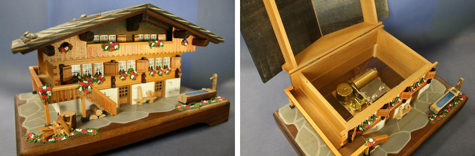 브리엔즈의 목공예 장인들은 수백 년에 걸쳐서 우아한 뮤직 박스로 즉 음악이 흘러나오는 샬레 주택으로 명성을 쌓아왔습니다. 샬레의 지붕을 열면 멋진 음악이