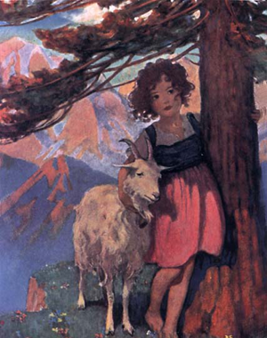 스위스 작가인 요하나 슈피리(Johanna Spyri)는 1881년에 알프스의 작은 마을을 배경으로 괴팍한